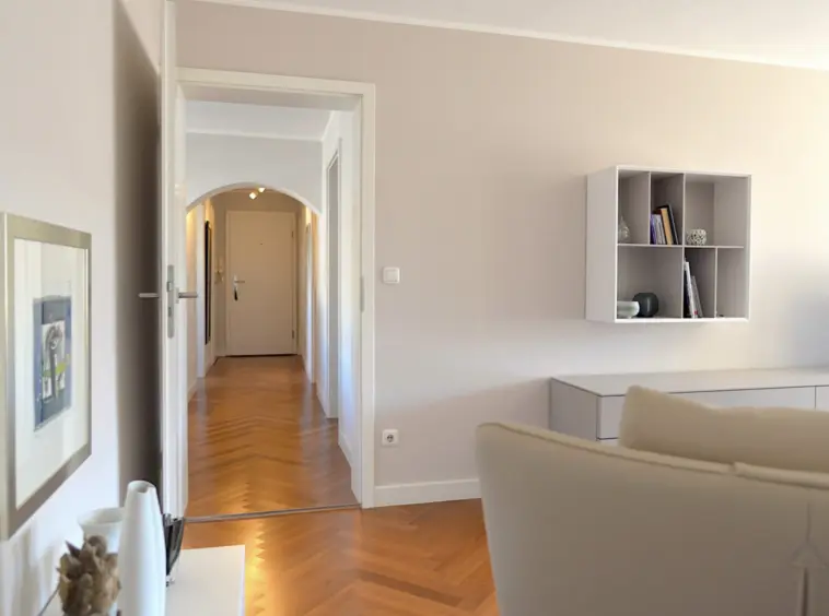 Die geschmackvolle Einrichtung unterstreicht die klassische Eleganz der attraktiven Wohnung mit ausgewählten Designermöbeln und teilweise eingebrachten Schreiner-Arbeiten.