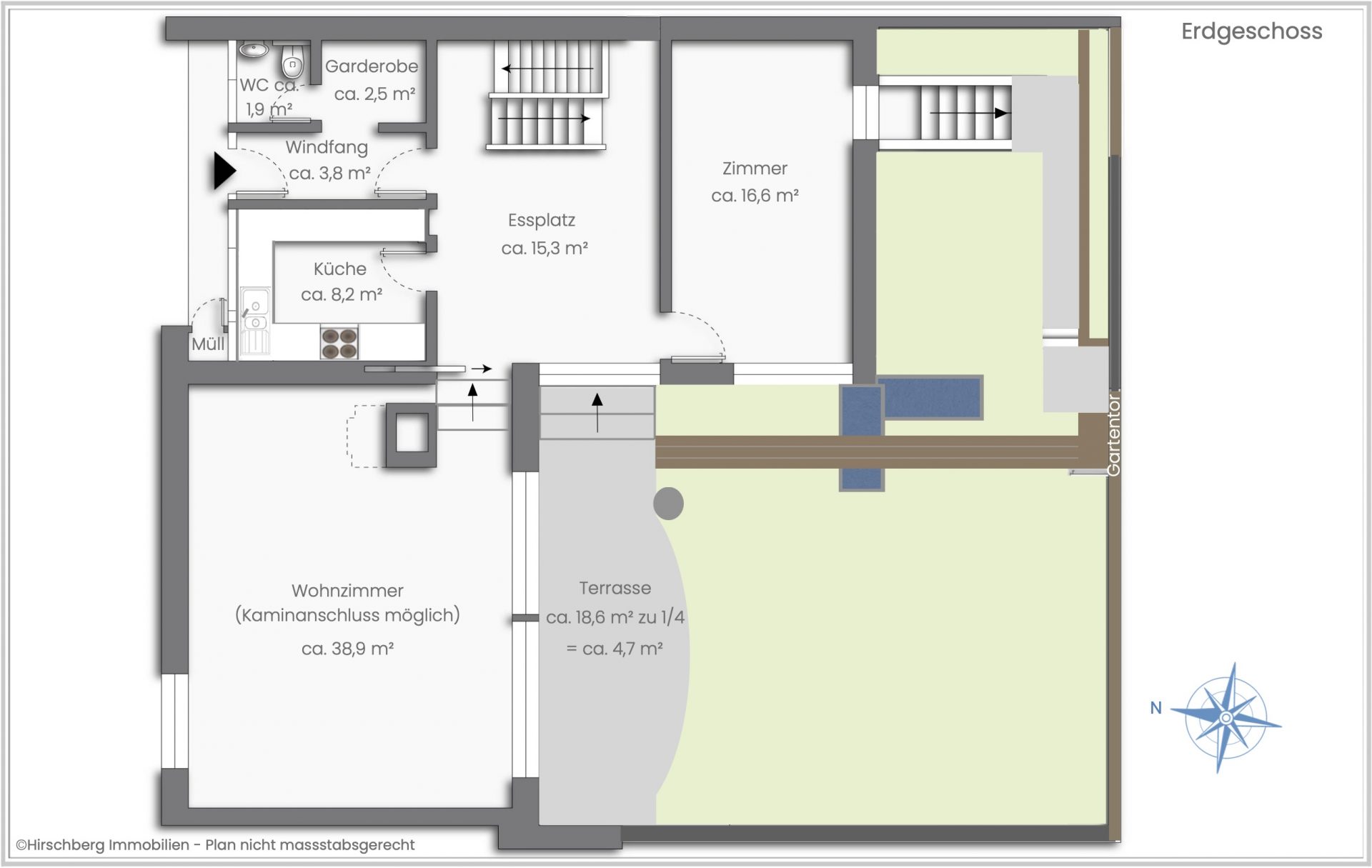 Trotz sorgfältiger Prüfung können wir keine Haftung für die Richtigkeit und die Vollständigkeit der Objektdaten übernehmen. Diese basieren auf uns erteilten Angaben sowie eigenen Recherchen. Die Grundrissdarstellung ist nicht maßstabsgerecht.