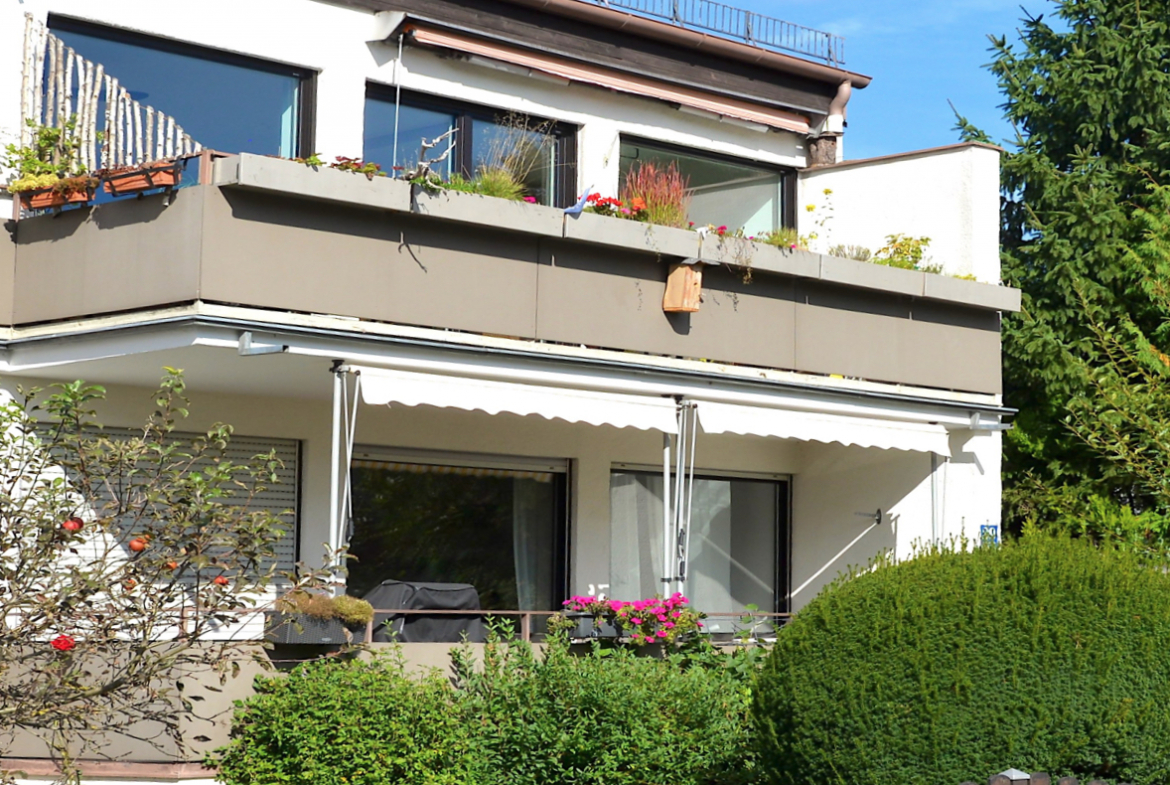 Die wunderschön, im Jahr 2019 komplett sanierte 3,5-Zimmer-Wohnung liegt im 1. Obergeschoss eines zweistöckigen Fünf-Parteien-Hauses aus dem Jahr 1972. Der Hauseingang befindet sich im Rückgebäude, an welchem ein schöner, gepflegter Garten zum verweilen oder zum sicheren Spielen der Kinder einlädt. Das zugehörige Gartenhaus bietet Platz für Fahrräder der Hausgemeinschaft. Wohnung Über das Treppenhaus in hellem Marmor erreicht man die freundliche 3,5 Zimmer-Wohnung, die im Rahmen der Sanierung mit Unterstützung von Architekt und Statiker eine neue Raumaufteilung erhielt. Der neue Grundriss erlaubt nun viele schöne und praktische Details. Kinderzimmer So entstand für zwei Kinder ein neues Raumkonzept, welches flexible Möglichkeiten für gemeinsame oder getrennte Nutzung mittels eines Rolltors bietet. Diele Die Diele bietet im Eingangsbereich Platz für einen Garderobenschank. Die schönen Eichenholz-Dielen verlaufen von hier bodengleich durch alle Wohnräume. Bad Das neu gestaltete, innenliegende Bad erhält dank neu eingesetztem Oberlicht Tageslicht. Auch die formschöne Badewanne mit Duschfunktion, das Doppelwaschbecken mit Unterschrank, das Hänge-WC sowie weitere praktische kleine Details schaffen eine ganz besondere Wohlfühl-Atmosphäre. Abstellkammer Weiter in der Diele Richtung Wohnzimmer ist wandbündig integriert eine praktische Abstellkammer. Schlafzimmer Im gut geschnittenen Schlafzimmer finden Doppelbett mit Nachtkästchen sowie ein raumhoher Kleiderschrank ausreichend Platz. Wohn-/Ess-Zimmer mit offener Küche Überaus ansprechend präsentiert sich das herrlich helle Wohn-/Ess-Zimmer mit offener Wohnküche in großzügigem Ambiente. Die bodentiefen Fenster bieten einen herrlichen Blick auf den schönen, geräumigen Balkon und in die Natur. Ein großer Esstisch, Couch und Klavier sind gut platziert. Einige Highlights wurden hier wohl durchdacht angebracht, z. B. zwei Haken für eine Relax-Schaukel oder die kuschelige Hängehöhle, das Leinwandrollo für den fest installierten Beamer, eine bewegliche Esstischlampe für den Positionswechsel vom Esstisch, ein stylischer Ventilator – viel Schönes und Praktisches zugleich. Balkon Der Balkon lädt zu gemütlichen Grill-Abenden oder einfach zum Entspannen ein. Von hier holt man sich mit Blick auf Blumen und Kräuter pure Frische in Küche und Wohnzimmer herein. Über einen Großteil des Balkons lässt sich eine schützende Markise ausfahren. Kellerabteil Zur Wohnung gehört ein kleines Kellerabteil. Hobbyraum Eine Attraktion ist der separate ca. 24 m² große Hobbyraum im Kellergeschoss. An Wohnqualität angelehnt ist dieser – mit Fenstern und Heizung ausgestattet – einfach ein Traum für Bastler, geschätzt bei Jugendlichen oder spontanen Übernachtungsgästen. Waschraum Gemeinschaftlich wird der Waschraum genutzt. Hier steht jeder Wohneinheit ein Platz für die eigene Waschmaschine und/oder Trockner mit der Wohnung zugewiesenen Anschlüssen zur Verfügung. Außenstellplatz Zusätzlich darf direkt vor dem Eingang ein Außenstellplatz mit vorliegender Zustimmung der Eigentümergemeinschaft genutzt werden. Die Wohnung ist nach Vereinbarung bezugsfrei.Lage