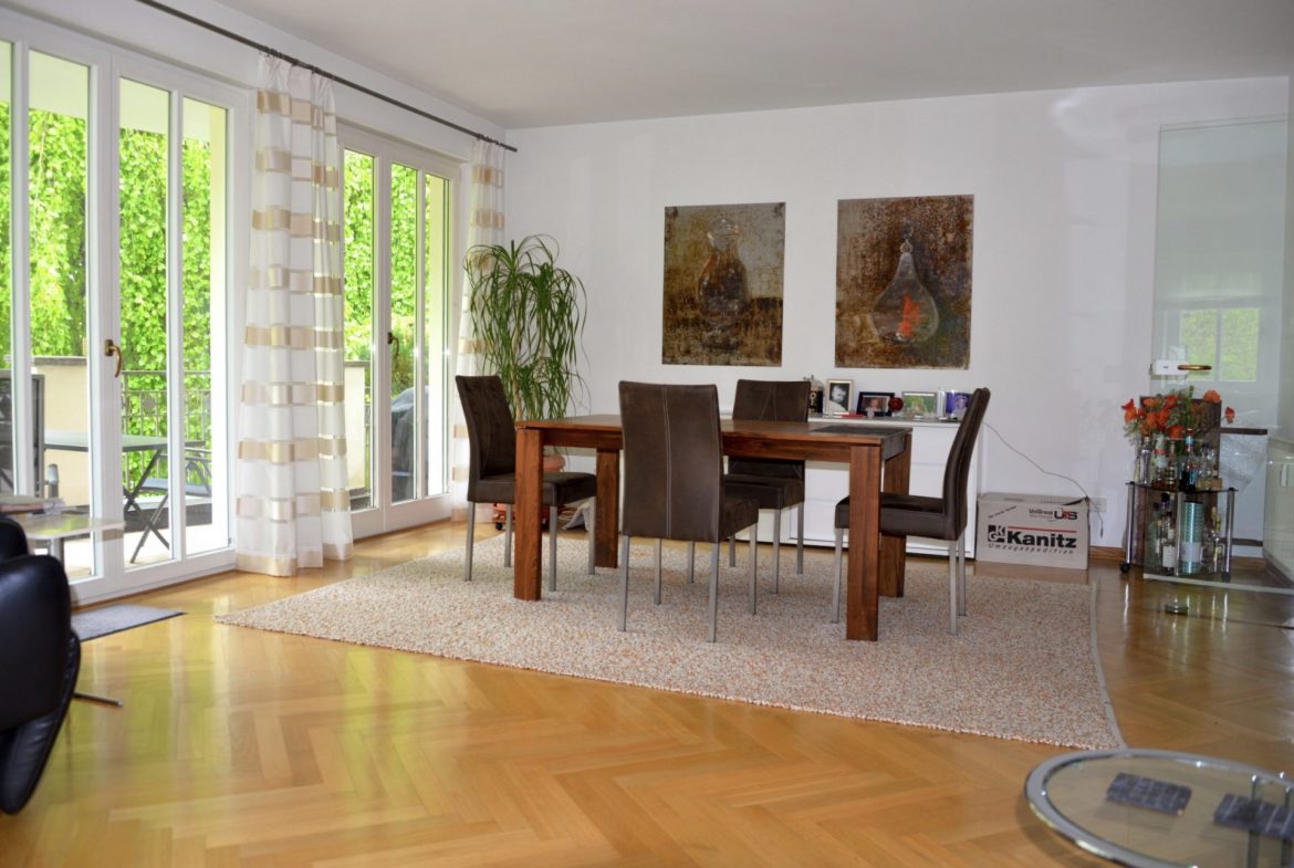 Ihr Traum – die schöne 4-Zimmer-Wohnung auf ca. 137 m² mit großzügigem Süd-Balkon im Villenstil liegt im ersten Obergeschoss eines Sechs-Parteien-Hauses aus dem Jahr 1999.